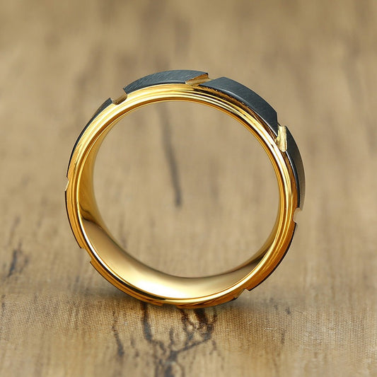 Tungsten Staal Juweliersware Swart Goud Mens Tungsten Staal Ring Tungsten Gold