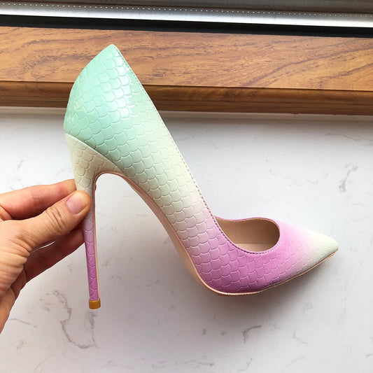 Tikicup Gradient Mint Pienk Vroue Krokodil-effek Punttoon Hoëhakskoene Sexy Dames Slip On Stiletto Pompe Grootte 33 43 44 45