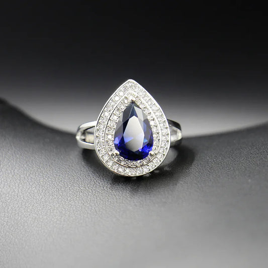 Waterdruppelvormige saffier silwer 925 juweliersware stelle vir vroue blou edelstene ring oorbelle ketting armband troue