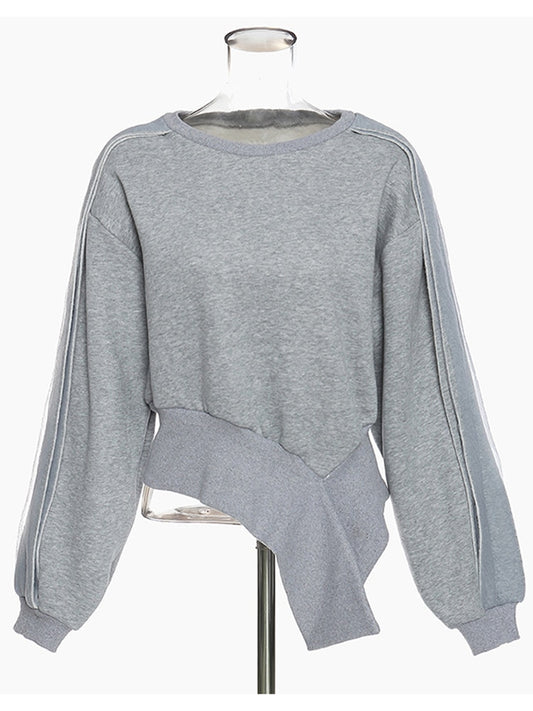 Loose Fit Big Size Irregular Hem Zipper Sweatshirt Round Neck Long Sleeve Women Fashion Spring Autumn