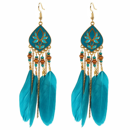 Long Feather Fringe Earrings Exaggerated Indian Drop Earrings