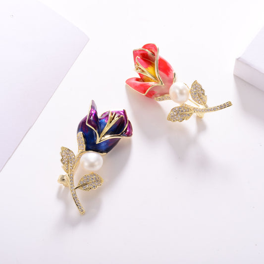 Light Luxury Brooch Exquisite Fashion Rose Flower Dress Pin Diamond Pearl Corsage