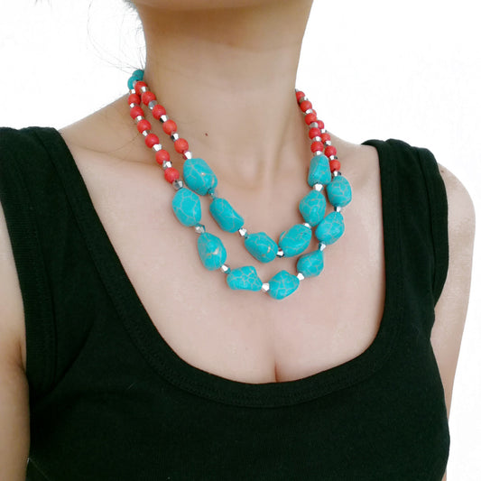 Layered Turquoise Exaggerated Vintage Clavicle Chain Necklace Jewelry