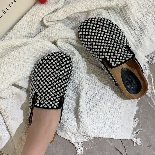 Mules Slippers Women New In 2023 Fashion Casual Summer Slides Rhinestones Female Shoes Ladies Outside Round Toe Flats