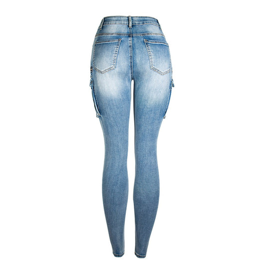 New Classic Multiple Pockets Jeans Women`s Ultra Stretchy Denim Cargo Pants Trousers Jeans For Women