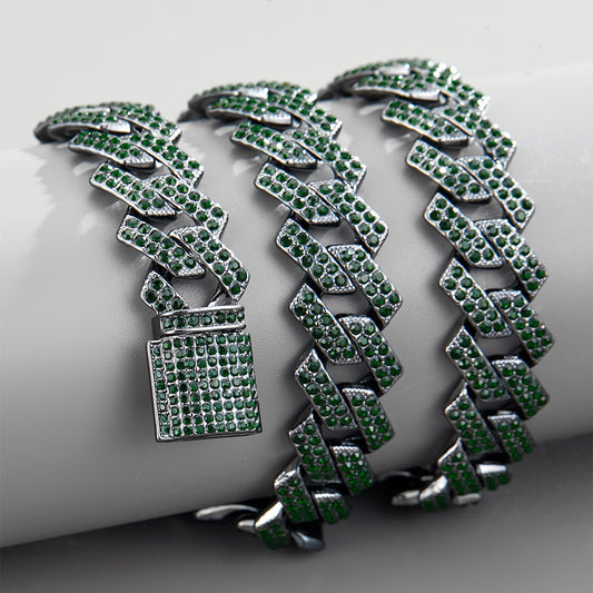 New Trend Hip Hop Hiphop Cuban Chain Emerald Alloy Diamond Full Diamond Couple Necklace