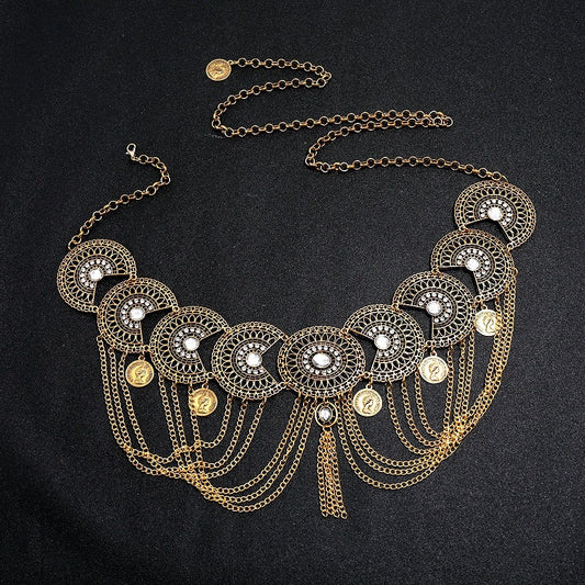 New Fashion Retro Ethnic Style Hollow Chain Tassel Head Coin Creative Waist Chain For Women