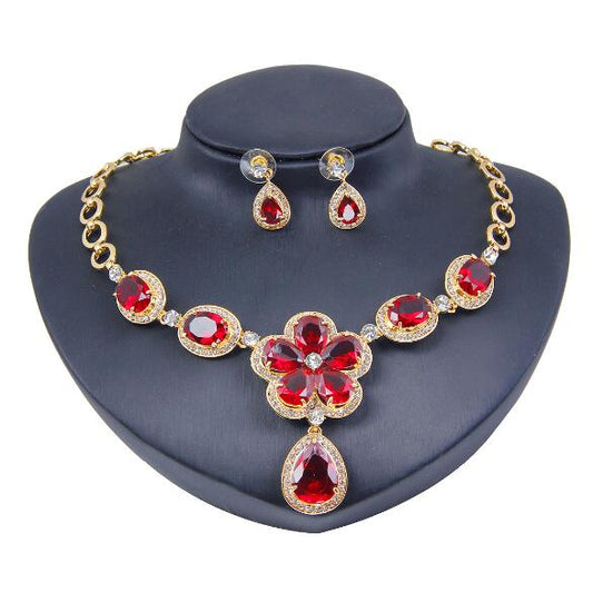 Plum Flower Pendant Necklace Earrings Jewelry Set