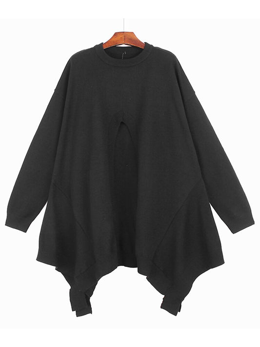 Split Sweater Irregular Full Sleeve Full Sleeve Solid Color Pleated Pullover Autumn Minority Loose Knitted