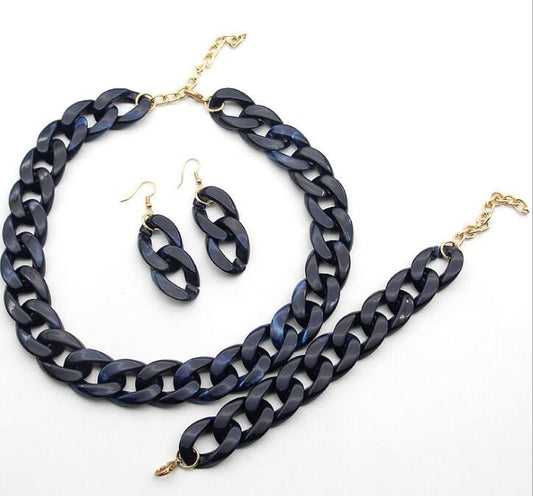 Stone Color Chain Necklace Acrylic Chain Buckle Earrings Bracelet Necklace Set