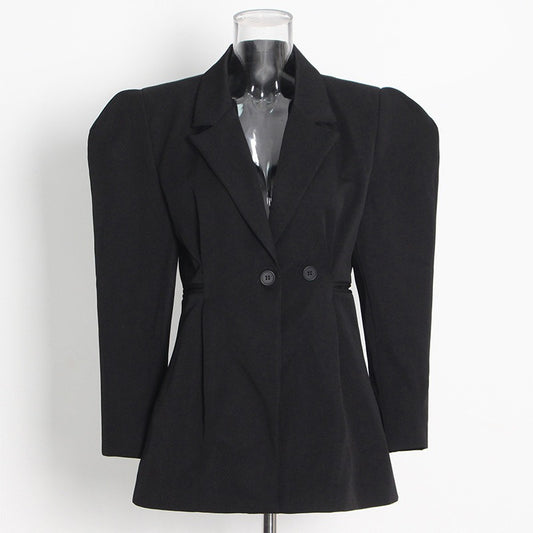 Temperament Fashion Full Sleeve Ladies Suit Coat Shoulder Pad Adjustable Women's Slim Suit Jacket