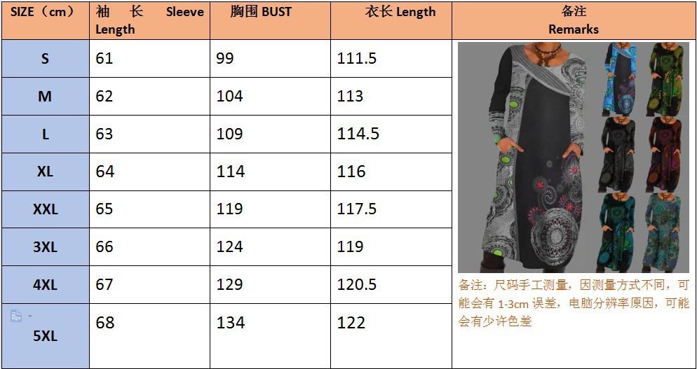 Pullover Print Ethnic Dress Long Sleeve Long Dress Skirt Ladies For Women